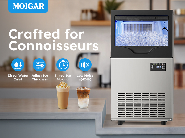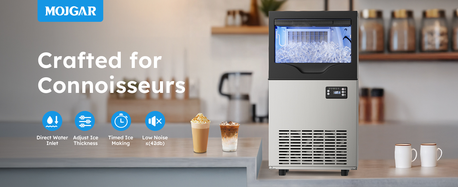 High-Performance Ice Maker for Every Setting The Mojgar Commercial Ice Maker is engineered for diverse environments such as home kitchens, coffee shops, bars, and restaurants. Whether you're making refreshing smoothies, chilled cocktails, or serving drinks on a hot day, this ice maker guarantees high-quality, reliable ice production every time.